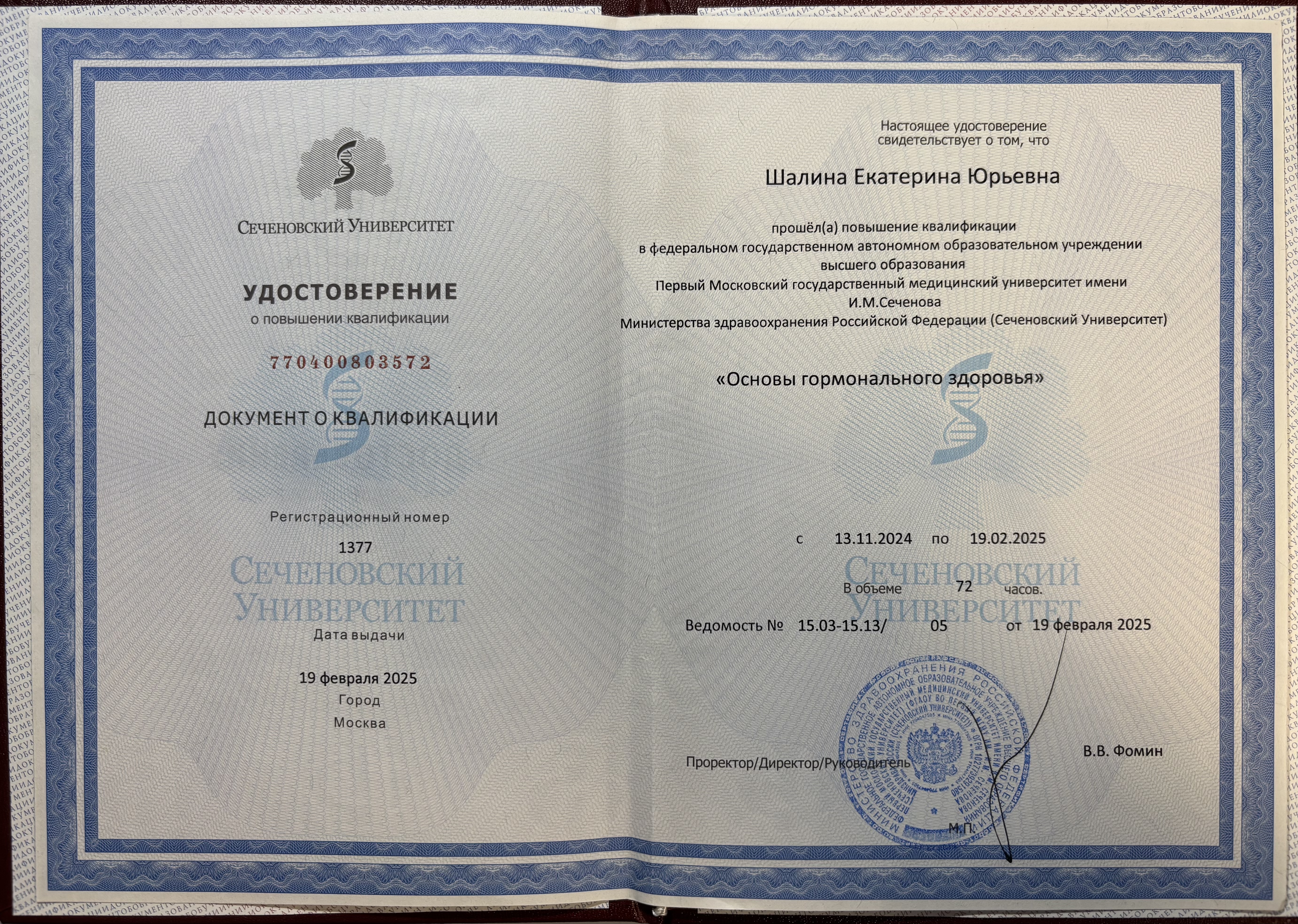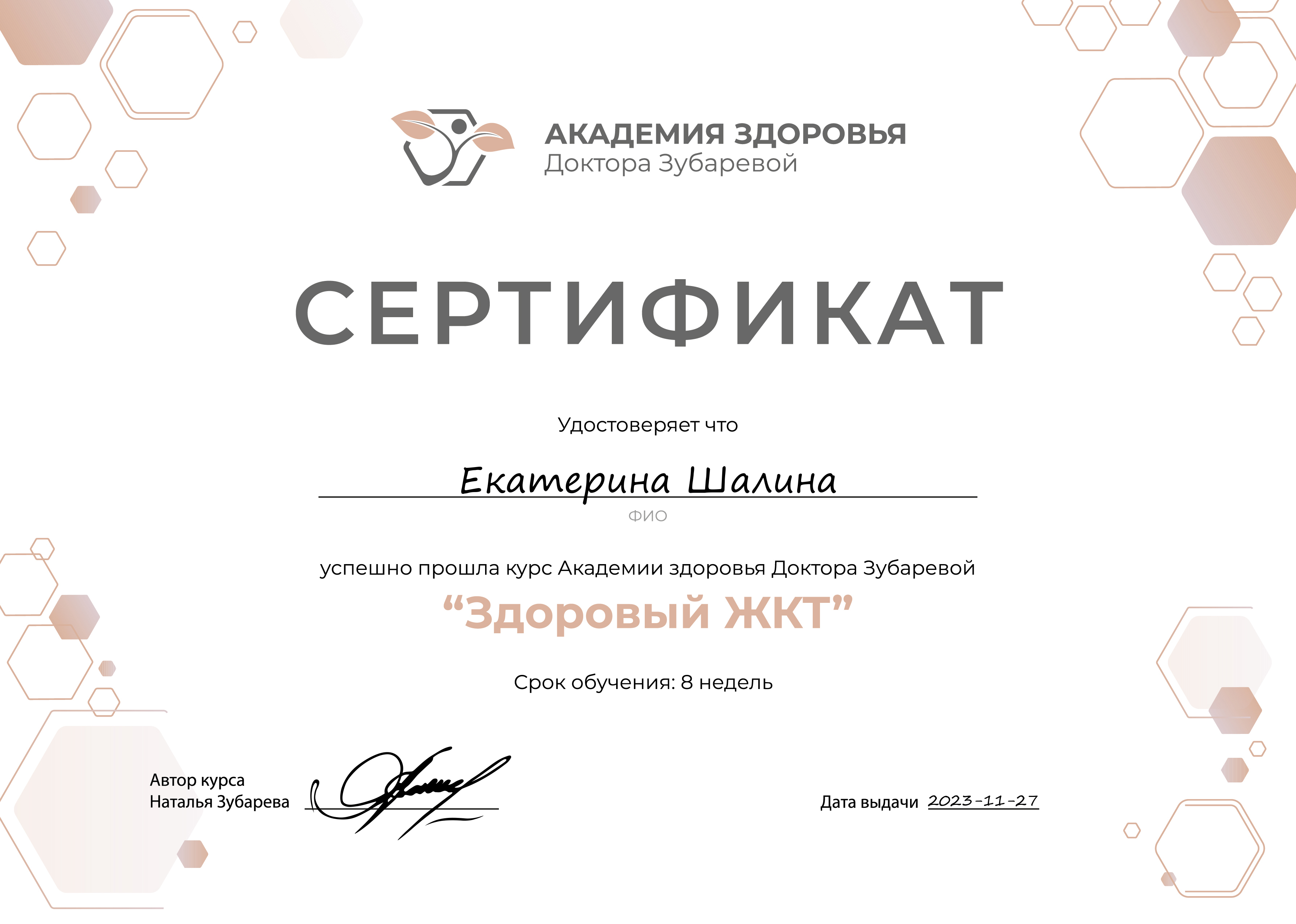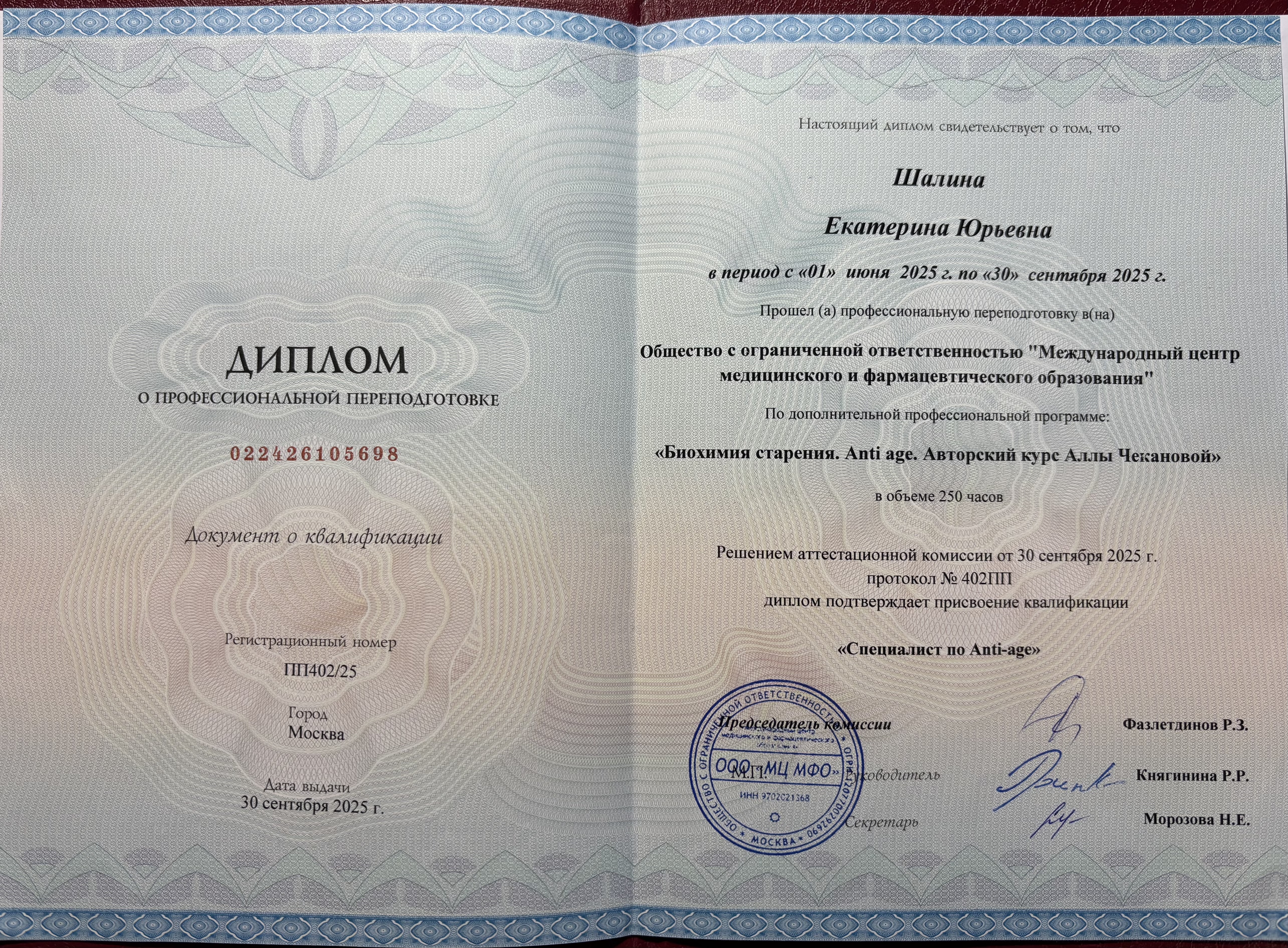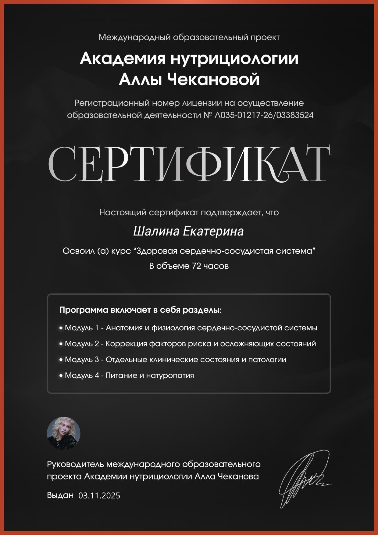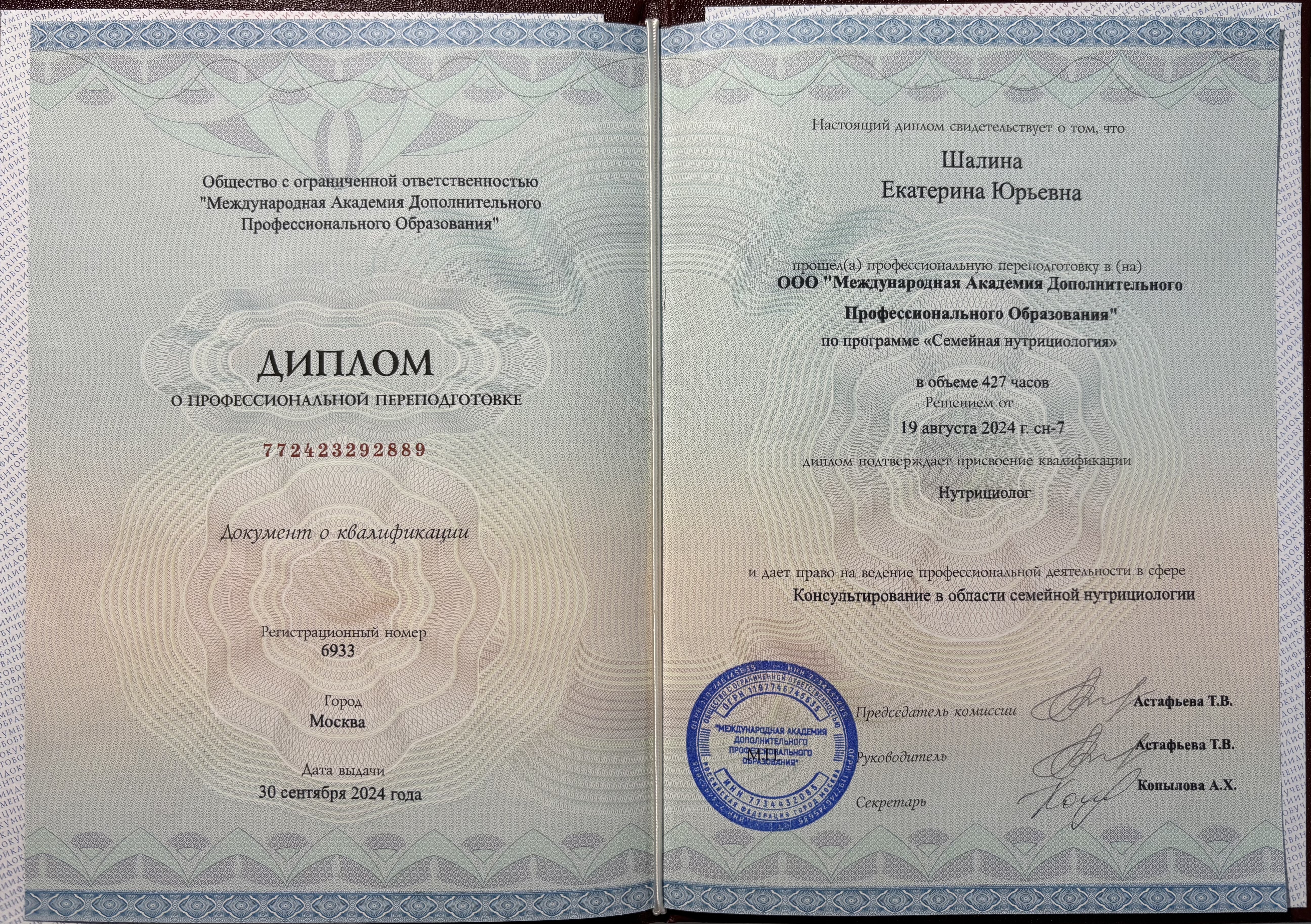 - Продолжает повышать квалификацию по направлению «Нутрициология».