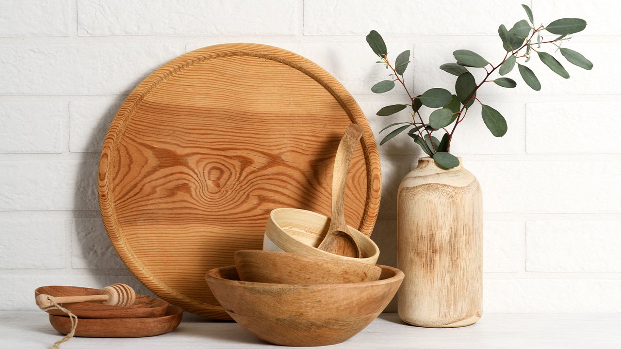 На рынке представлен огромный ассортимент деревянной посуды: тарелки, менажницы, разделочные доски, лопатки и подносы. Многие экземпляры выполнятся ремесленным способом и по индивидуальному заказу. Такая посуда создает в интерьере элементы уюта. Она идеально подходит для украшения праздничного стола. Единственное, в такой посуде нельзя готовить, а уход и хранение требуют дополнительных усилий.