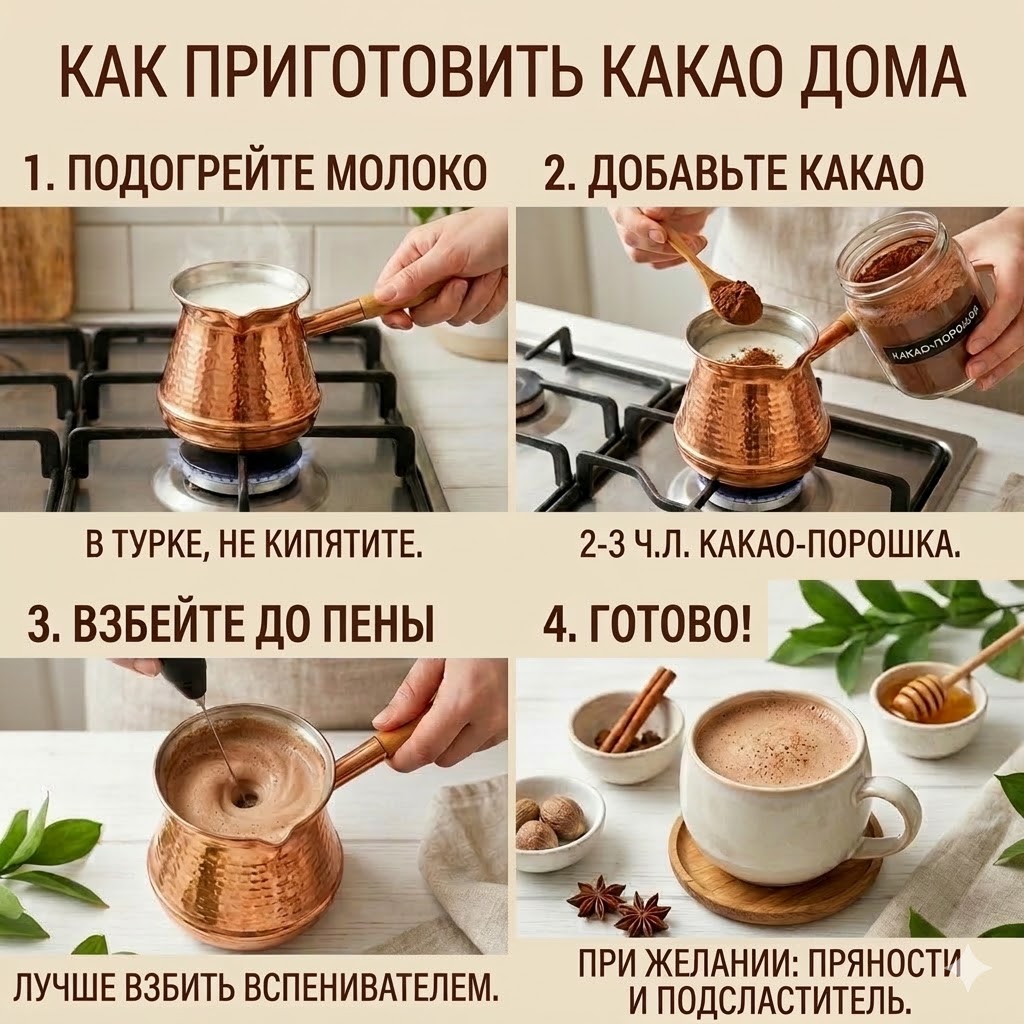 Как приготовить какао дома