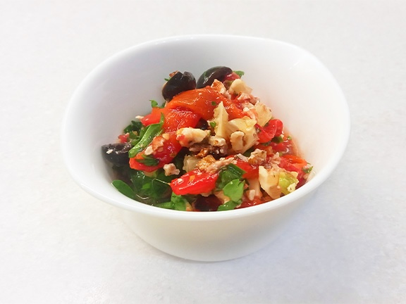 - Поперчить салат, добавить орегано, заправить оливковым маслом и гранатовым уксусом. Хорошо перемешать. Готово!