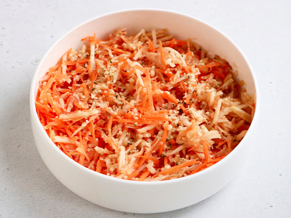 Данный сыр прекрасно сочетается с морковными крекерами и овощами.