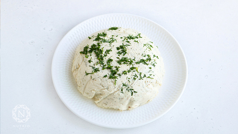 - После взбивания добавить к массе из кешью средиземноморские травы и сушёный укроп, хорошо перемешать.