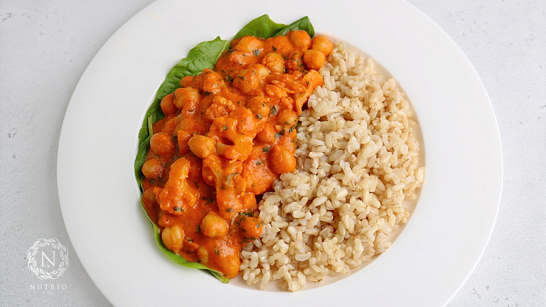 Сочное и ароматное карри с нутом и цветной капустой служит отличным источником питательных веществ и заряжает организм силой и энергией, дарит согревающий эффект и укрепляет работу иммунной системы благодаря искусному применению специй и прочих полезных продуктов.