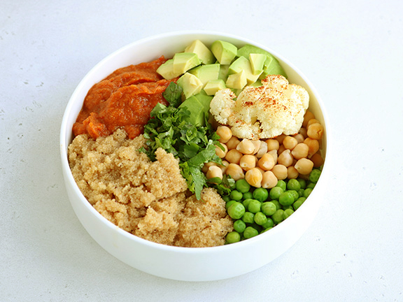 Для того чтобы перцы из закуски превратились в самостоятельное сбалансированное блюдо, добавьте к перцам хумус из тахини и нута, а также свежие помидоры и зелень по вкусу. Для большей пользы перцы можно посыпать ядрами семян конопли.