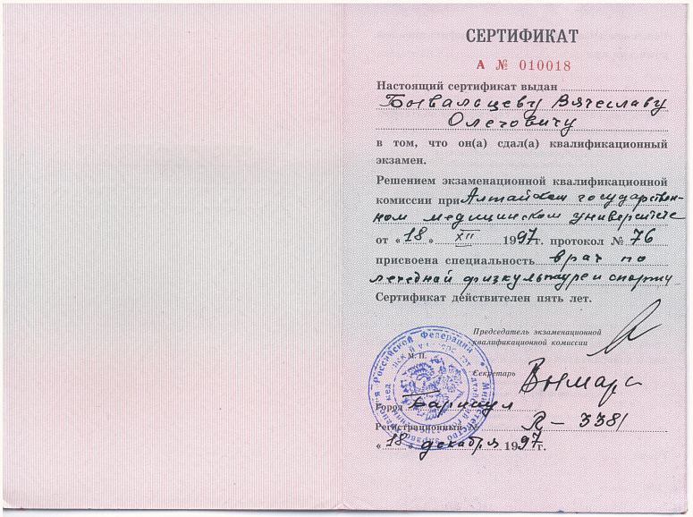 - С 1997 года врач по лечебной физкультуре и спорту. Специализация: лечебная физкультура, массаж, мануальная терапия.