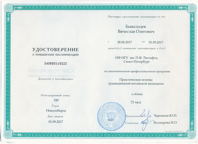 - В 2017 году проходил обучение на курсе «Практические основы традиционной китайской медицины».