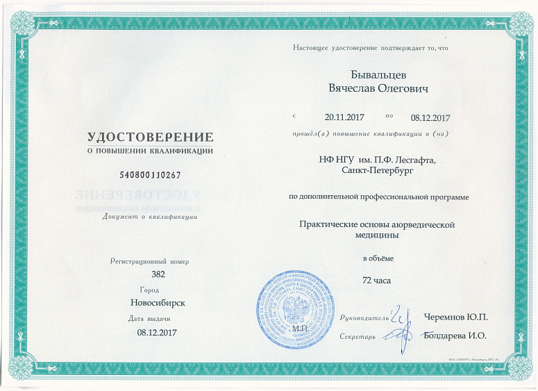 - В 2016 году проходил обучение на государственном курсе по аюрведе у Суботялова М. А.